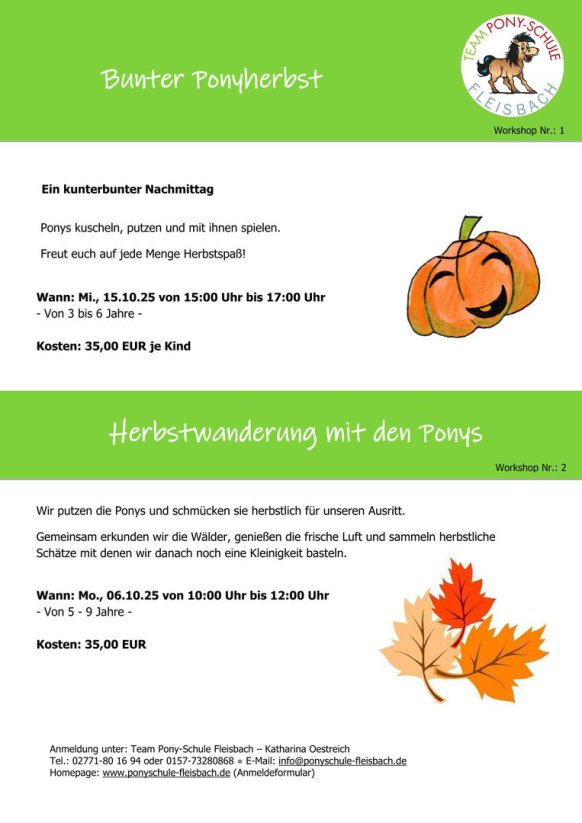 Ausblick - Workshops und Ferienpassprogramm: